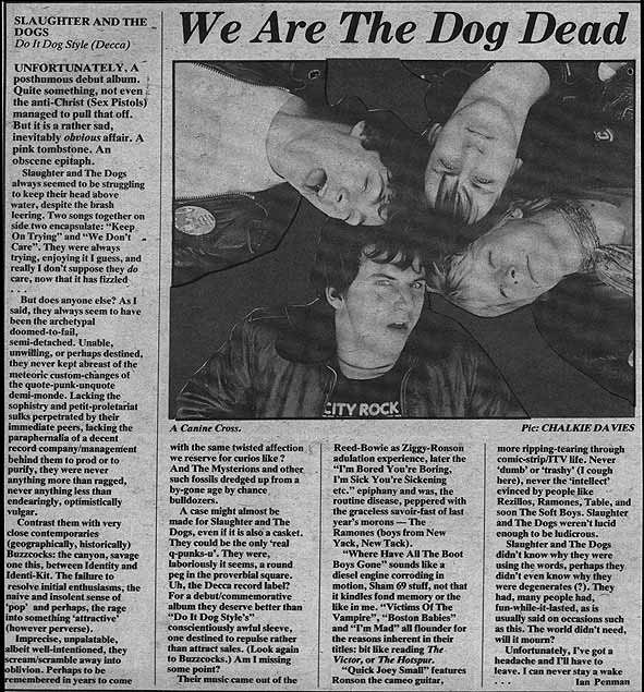 the mighty slaughter. one of the best original uk punk bands without a doubt. here doing a cover of frankie vallies 'your ready now', and dont these man-coonians do it justice. punk bands should be made up of scoundrals, car thiefs and general nogoodniks and this is the band to bring that point home with an right royal wham in yir chops. peach of a 7 inch and should be in everyones collection. if you dont own this then your mothers nether regions do resemble a torn out fire place. ya middens..!!